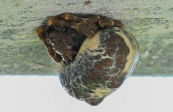 “How did she manage to get those up there without my noticing?” I asked myself. Three rough, dark globular egg sacs hung from the upper rail of the fence that cuts off access to Sunken City mere steps from my home. There was no mistaking what these were! Tough silk strands bound the egg sacs into place. Stepping off the path, I peered up into the sheltered niche made by the top rail and supporting stanchion where I knew she would be. Yep! A Southern Bolas Spider, one of the most peculiar animals of our most peculiar world.